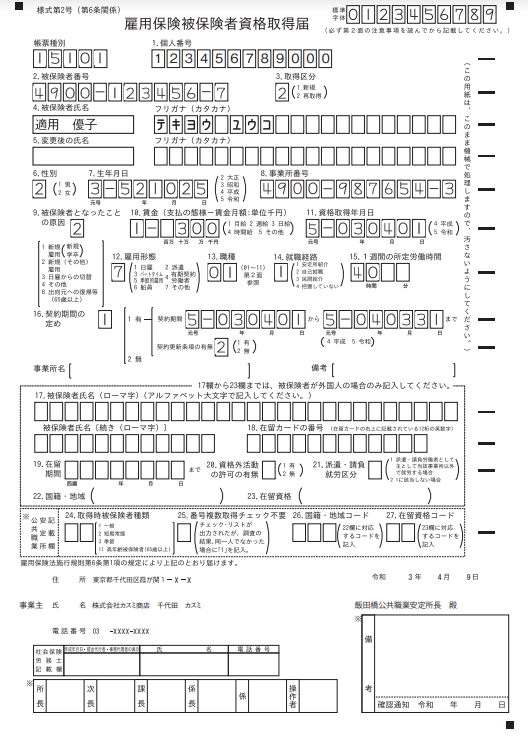 ②雇用保険被保険者資格取得届