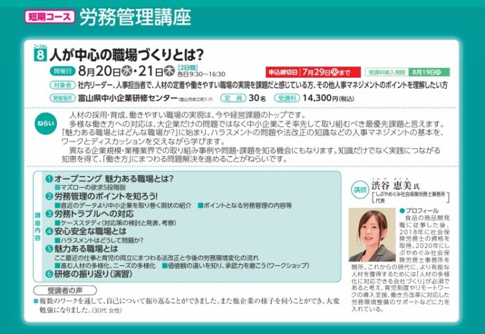今年も、その中の「労務管理講座」の担当をさせていただくこととなりました。